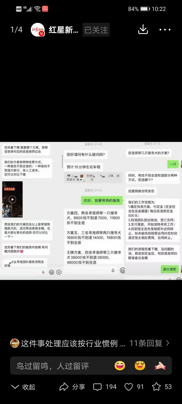 寻宠服务这两年确实火,但行业乱象也够吓人。动辄几千上万的收费,服务质量全靠碰运气,合同条款全是文字游戏。宠物丢了,主人本来就急,一急就容易脑子一热掏钱。这帮人吃的就是这份"急"的饭。