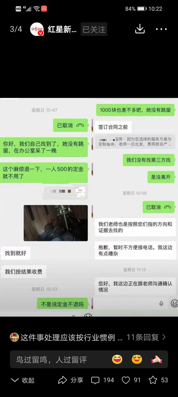 网友炸了锅。有人算账:"一小时四千块,这比大律所合伙人的咨询费还贵。"有人调侃:"这哪是寻宠团队,这是遛狗顺便遛主人的钱包。"更多人替陈女士不值:"猫就在屋里,他们就算稍微认真找找,也不至于让物业先发现吧?"