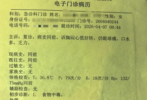 送医后被诊断为"食物中毒"