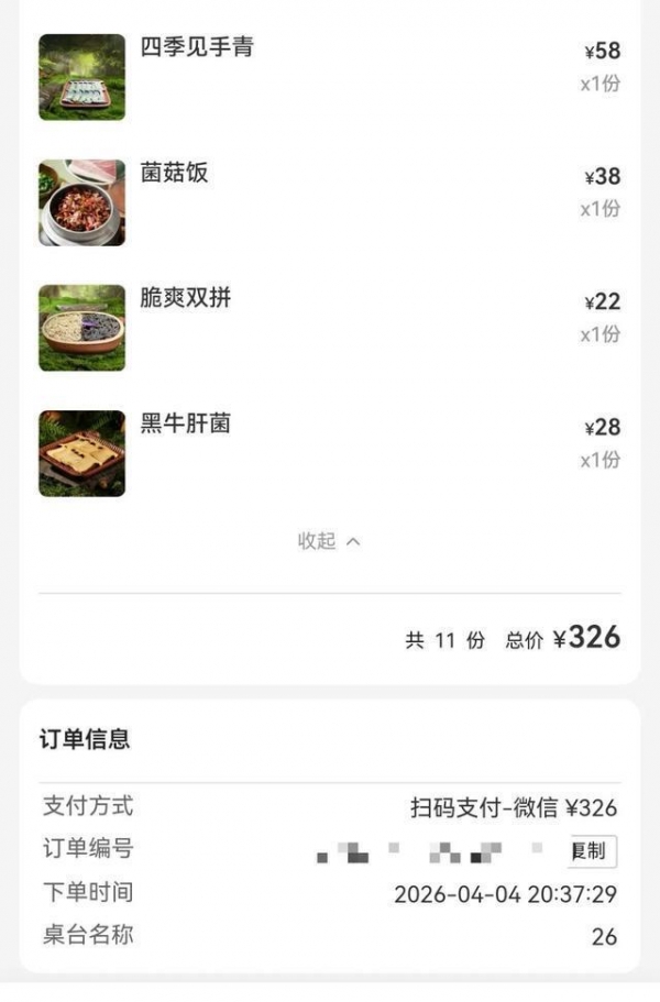"因为是云南特色火锅,我们便点了见手青、蘑菇饭等餐品。"向女士说,晚上9时许,她和朋友离开,支付了326元餐费。回家路上,她感觉到不适,"我怀疑是中毒了。"