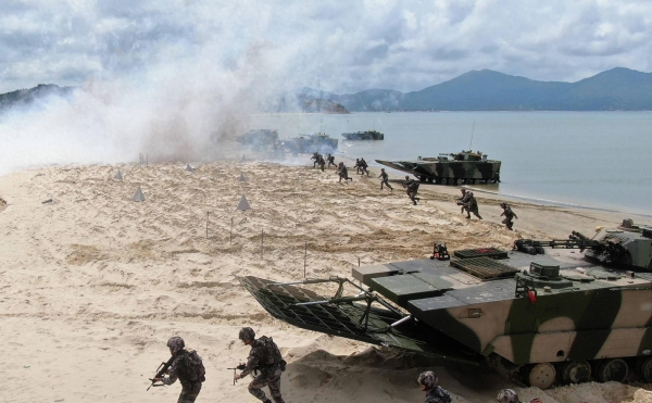 除了更加实战化和更具针对性,这次绕台演习还有一个非常重要的特征,那就是距离台岛越来越近。对比此前几次演习不难发现,这次演习的区域相对集中、范围更大,在澎湖岛以及台军花莲基地附近的演习区域几乎已经划到了海岸线上,个别区域距离台岛本岛南端仅仅9公里。毫不夸张的讲,这次的演习区域距离登岛真的只差一步。碰上天气好的时候,说不定台湾民众在海岸边就可以看到参演的军舰和战机,运气好的说不定还能看到导弹发射。