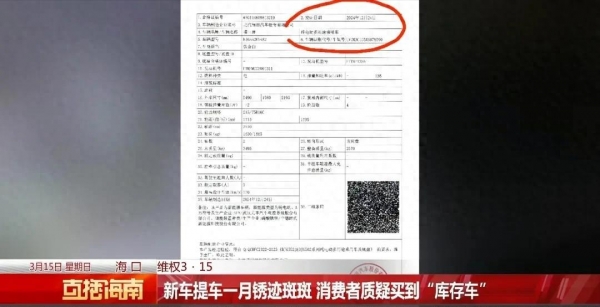 心存疑虑的王女士,立马去查询了车辆合格证,这不查还好,一查直接炸了:这辆车的制造日期是2024年12月24号,距离她提车的时间,已经整整过去了11个月!要知道,在汽车销售行业,通常出厂超过6个月的车辆,就被视作库存车,而4S店全程一字未提,还以全新车的价格卖给了她。