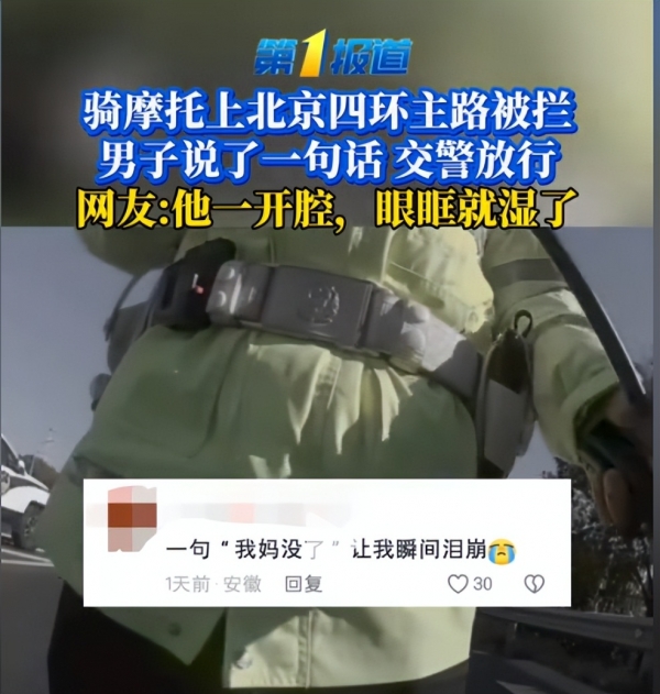 在这条摩托车严禁通行的快车道上,这位男子却冒险驶入,原因令人心碎:他的母亲突发疾病离世,他急着赶回通州老家奔丧。