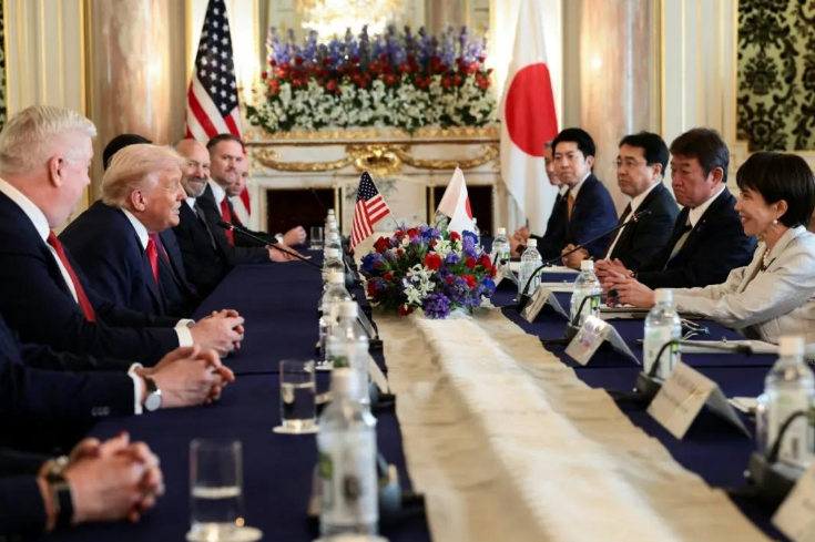 这是两位首脑首次面对面会谈。会谈历时约40分钟。随后,两人出席了签署仪式,签署了就日美关税谈判与稀土相关的两份协议文件。