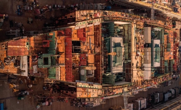 这两天,商业卫星图像在海外媒体上流传开来,大连造船厂的004型航母有了新动静。相比几个月前的状态,这次曝光的图片显示,大量船体分段已经完成合拢,主体结构基本成型,上层甲板也在铺设当中。舰艉还有一块大约15米左右的分段尚未安装,但整体轮廓已经清晰可见。