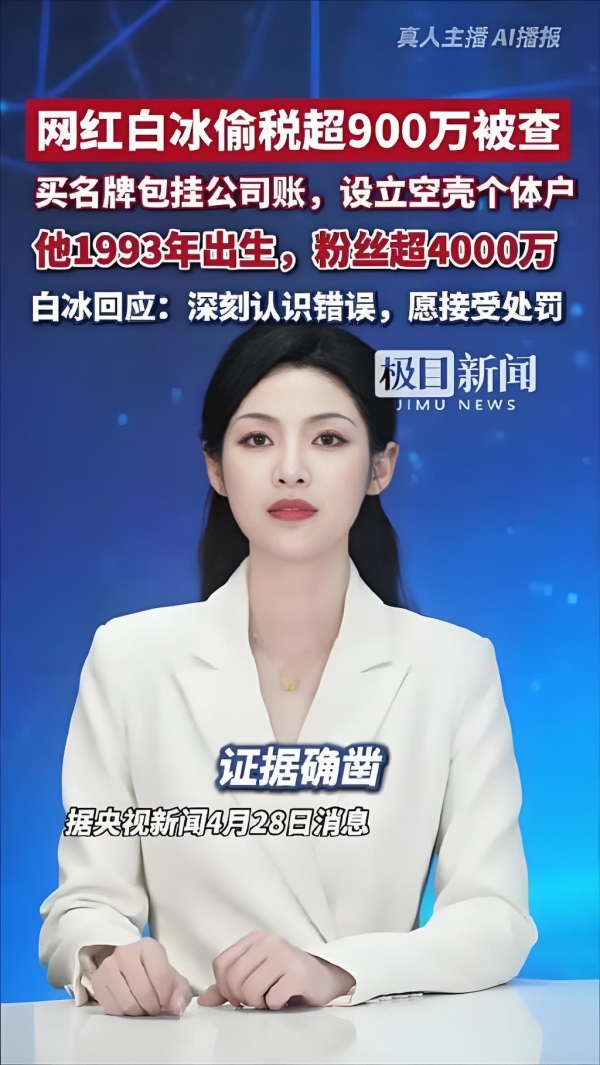 4月28日,国家税务总局直接官宣了白冰的偷税案,时间线拉到2021-2024年。