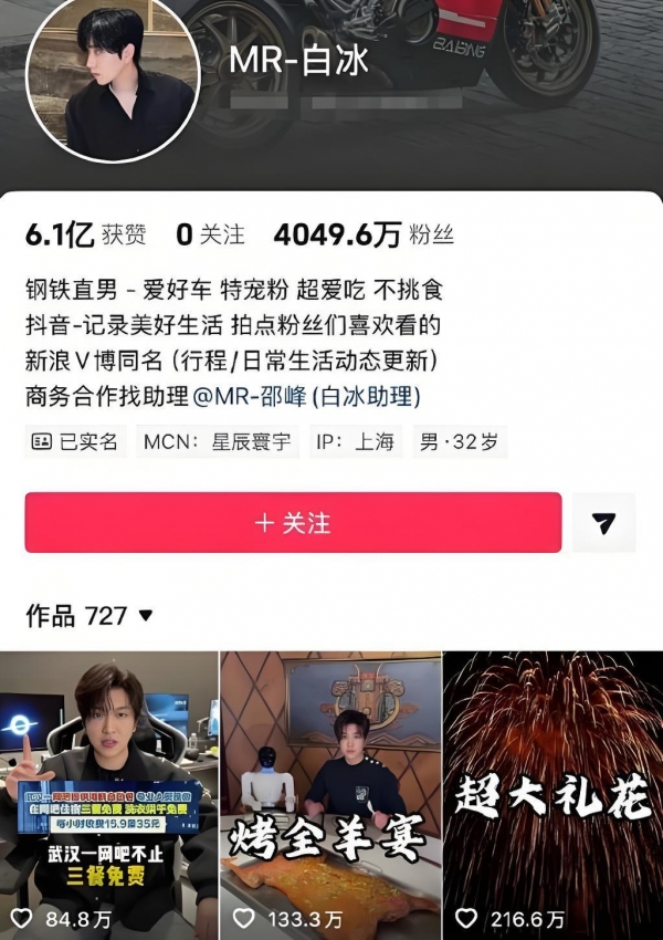 抖音粉丝超4000万,每条视频点赞几十万起步,商务合作接到手软,一场探店广告费六位数都是常态。