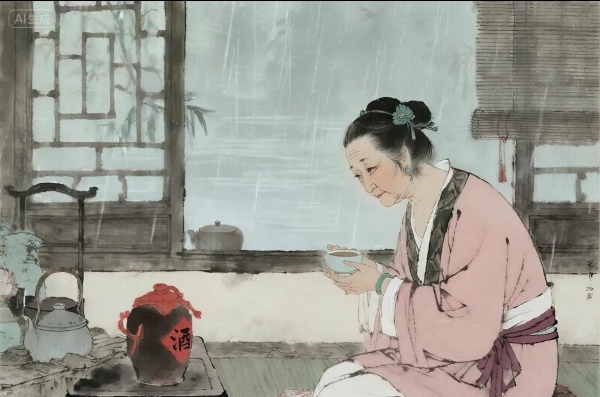 此时期最具代表性的作品无疑是 《声声慢·寻寻觅觅》。虽然传统上将其归为晚期作品,但其创作理念与情感基调在中年丧夫后已然奠定:"寻寻觅觅,冷冷清清,凄凄惨惨戚戚。乍暖还寒时候,最难将息。三杯两盏淡酒,怎敌他、晚来风急?雁过也,正伤心,却是旧时相识。满地黄花堆积,憔悴损,如今有谁堪摘?守着窗儿,独自怎生得黑?梧桐更兼细雨,到黄昏、点点滴滴。这次第,怎一个愁字了得!"开端十四叠字如珠玉落盘,层层递进,将失落、孤寂、悲凉的情感推向极致。"雁过也,正伤心,却是旧时相识"将自然景象与个人记忆交织,"怎一个愁字了得"则以反问作结,打破传统词作格式,展现出创新魄力。这首词标志着"易安体"在悲痛体验中达到新的艺术高度。