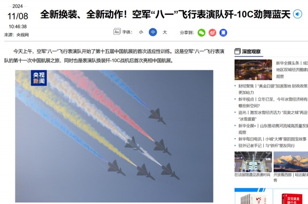 作为对比,与美国雷鸟飞行表演队对标的空军八一飞行表演队自2009年开始使用歼-10A战斗机,而到了2023年又换装了新锐的歼-10C,这是美国同行不敢想象的新陈代谢速度。