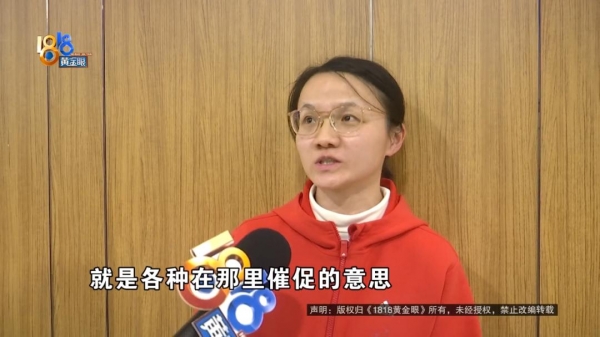 张女士:我就反反复复犹豫了好几遍,他们的工作人员就一个劲地说,我一天没吃饭了,我也想尽快地促成这笔交易,就是各种在那里催促的意思,让我赶紧地签字。后来就第二天早上头脑清醒一点,就觉得怎么不网上去询一下价,不咨询一下市场的行情,(戒指)至少是5000元。