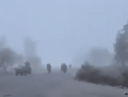 很显然,视频中的俄军正利用浓雾为掩护,驾驶摩托车和各种改装的民用破车实施机动。