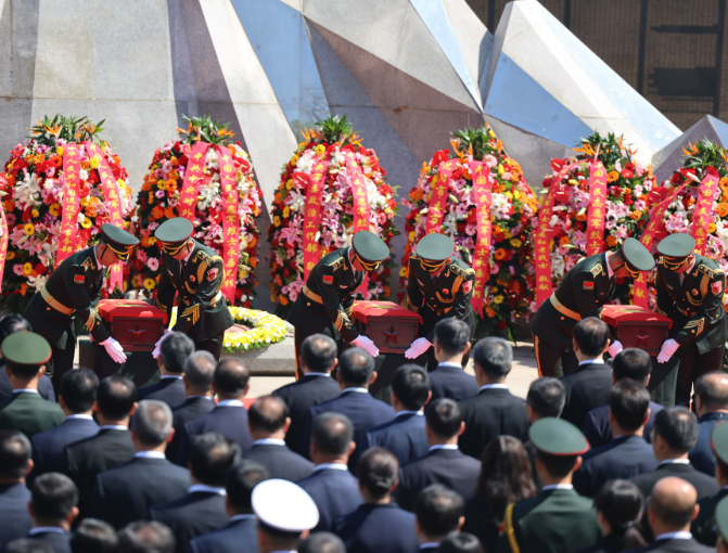 今天上午,第十三批在韩中国人民志愿军烈士遗骸安葬仪式在沈阳抗美援朝烈士陵园举行。