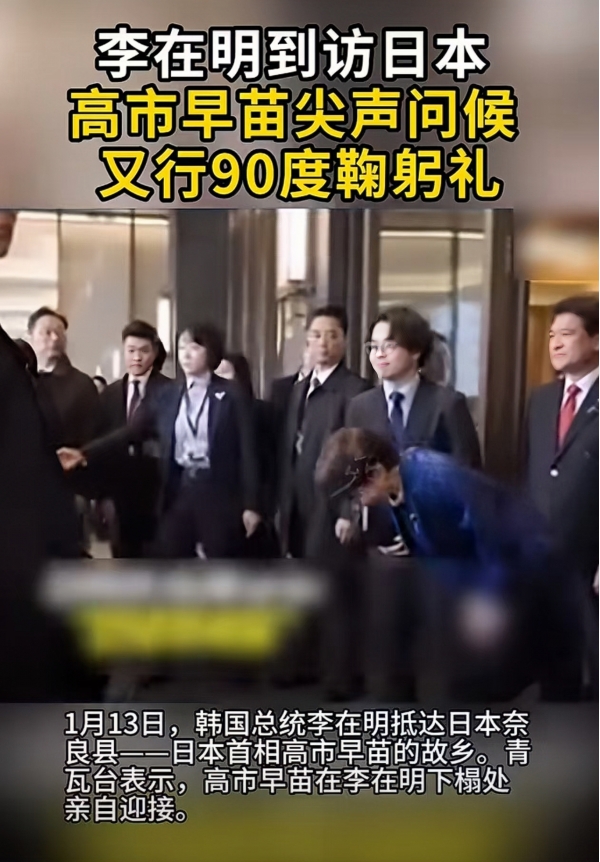 李在明昨天访日时不仅获得日本首相高市早苗"深鞠躬90度"迎接,入场时还两次向韩日国旗鞠躬,日本方面甚至提前一周筹备会谈。