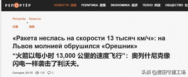根据乌方的观测,这枚导弹在15分钟内飞行了1500公里,飞行速度为13000公里/小时,相当于约10.53马赫。也就是说,10马赫导弹从天而降,这样的速度非常高,乌克兰防御系统无法对其进行拦截。
