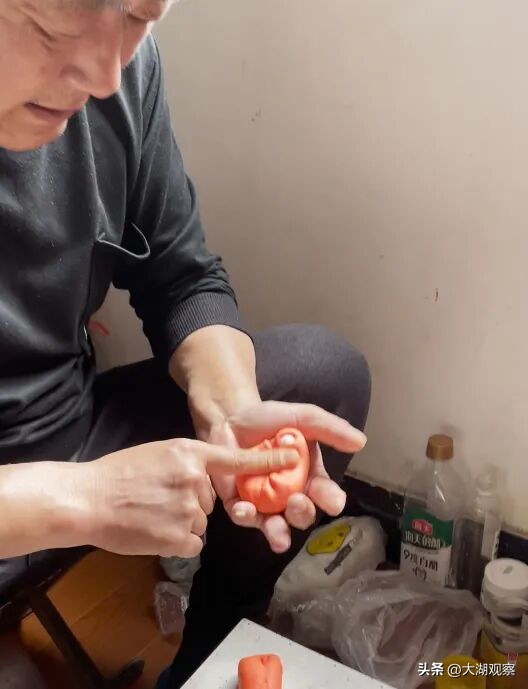 11月4日,合新闻记者在庐阳区见到了他本人,彼时的他正坐在小板凳上为手中的面人上色。小小的出租屋内,摆满了捏好的面人。