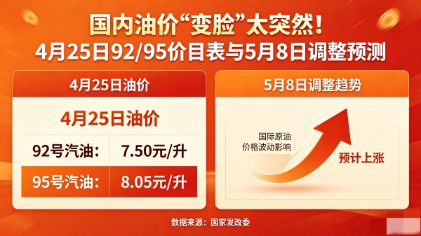 值得注意的是,短期内暂无新一轮调价动作。下一次国内油价调整窗口,锁定在5 月 8 日 24 时,车主可合理错峰加油。