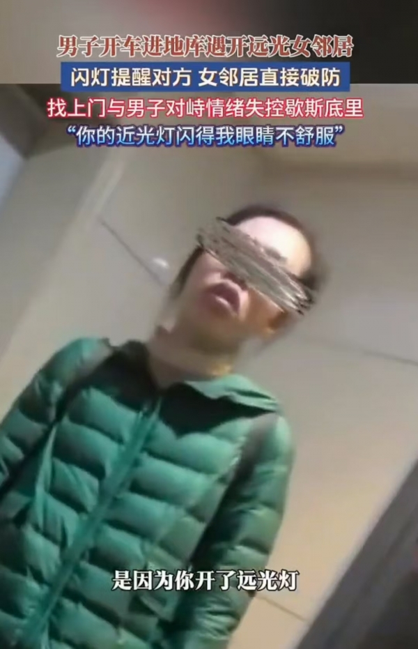 "你开远光灯照我,你还上门骂我?""黑龙江,男子开车进地下车库,遇到女邻居开着远光灯往外面开,男子就闪了一下灯提示女邻居关掉远光灯,可没想到女邻居直接破防!找上门与男子对峙,情绪失控歇斯底里:"你的灯闪的我眼睛不舒服?"