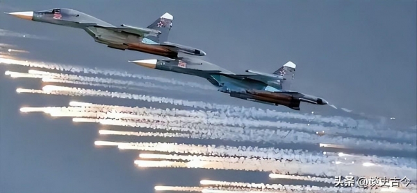 "热焰弹"其实就是我们常说的"干扰弹",主要是通过投放燃点低的金属物质,让其产生大量的热源,从而干扰飞机导弹的攻击。