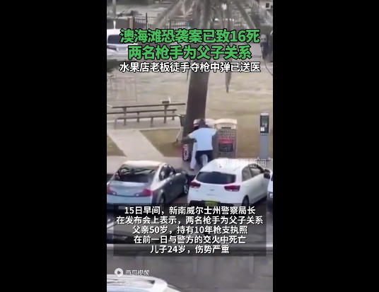 澳大利亚新闻网14日刊文质疑"海滩枪击案的凶手是如何获得枪支的?"该报道称,警方尚未正式确认两名枪手所使用的具体武器。