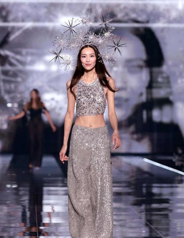 更绝的是刘雯,第九次踏上维密T台直接刷新亚洲纪录,粉色珊瑚装配珍珠头饰,slay全场的气场连孕肚妈妈都得喊声"雯姐"!
