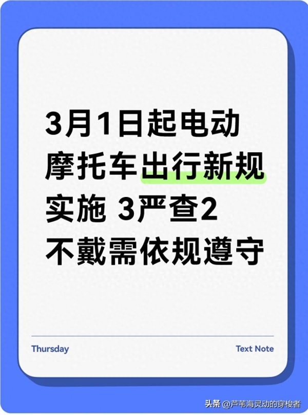 电动摩托车已经成为很多人日常出行的重要工具,便捷的同时,安全与合规始终是第一位的。3月1日起实施的新规,覆盖了证件、车辆、行为、防护等多个方面,每一项要求都围绕安全与秩序展开。记住3严查、2不戴的核心内容,主动规范骑行行为,既能保障自己的出行权益,也能为道路安全贡献一份力量,让每一次出发都平安,每一次返程都顺利。
