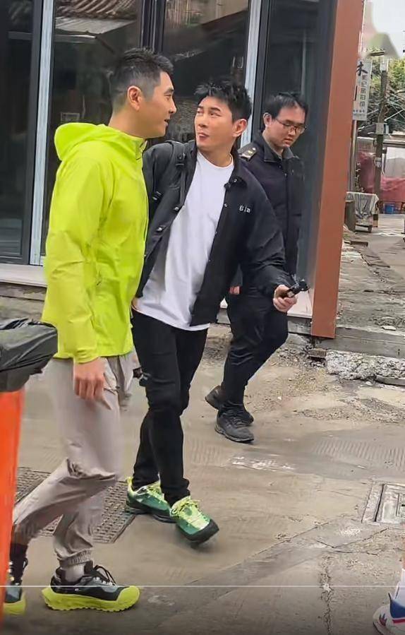 站在邢傲伟旁边的吴奇隆,肤色明显黝黑了不少。虽然身材没有特别发福,但还是能看出他微微突出的小肚子。不过他的四肢依然保持纤细,这是典型的中年男人身材特征。