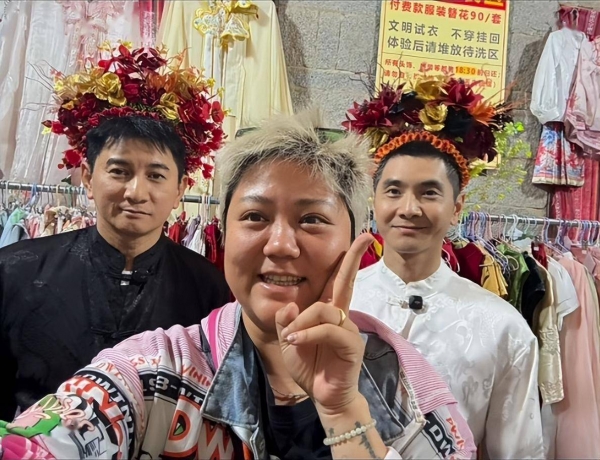 两人这次来泉州是为了录制综艺节目《隆邢天下》。在景区里,他们看到游客穿着簪花服装后,决定也去体验一下这个造型。