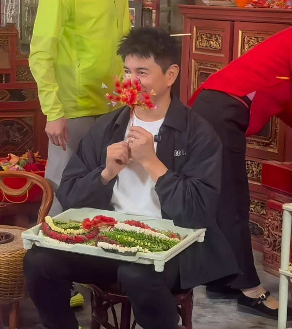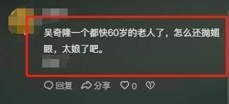 录制过程中,吴奇隆还调皮地用发饰遮脸,向镜头抛媚眼。这一幕被网友拍下后引发争议,有人说:都快60岁的人了,怎么还抛媚眼,太娘了。