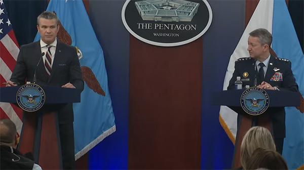当地时间3月4日,美防长赫格塞思和参联会主席凯恩举行新闻发布会 视频截图