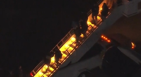当地时间1月3日,被绑走的马杜罗在纽约走下飞机。 美联社视频截图