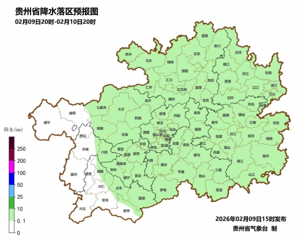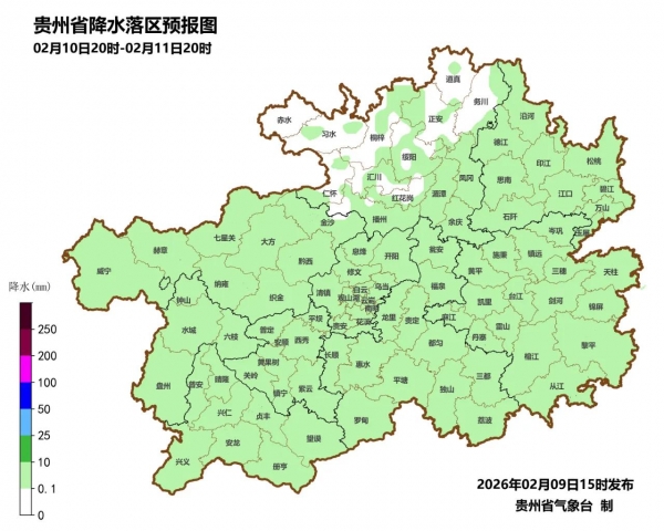 2月10日(今天)白天到夜间(08时-11日08时):全省阴天有小雨,西北部高海拔地区有雨夹雪、冻雨,夜间到早晨局地有雾;大部地区偏北风2~3级,局地阵风4级;最高气温毕节、六盘水、遵义北部1~5℃,其他地区5~9℃,最低气温西北部高海拔0~3℃,毕节、遵义、贵阳北部1~5℃,其他地区3~7℃;需穿戴防风保暖外套、防滑鞋,尽量减少早晚户外活动,驾车警惕高海拔路段结冰打滑,户外停留注意防范湿冷与低能见度影响。