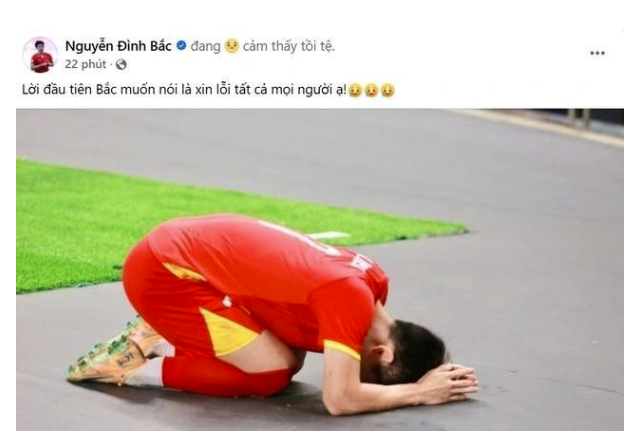 或许是赛前太过自信乐观,赛后,多位越南球员面对0-3的结果都崩溃了。越南队头号球星阮庭北发社媒向球迷道歉。