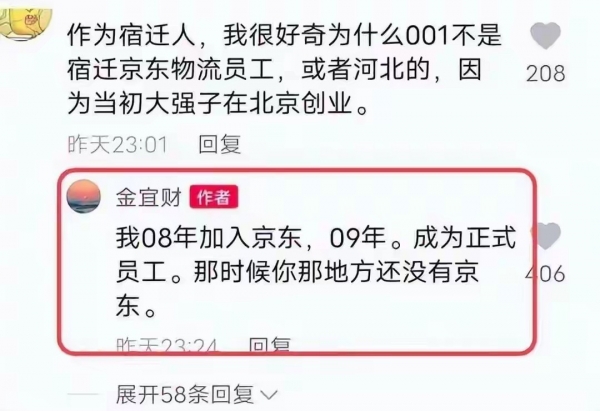 很多曾经跟随刘强东的人就真的有发言权,其中就包括了京东001号快递员金宜财。