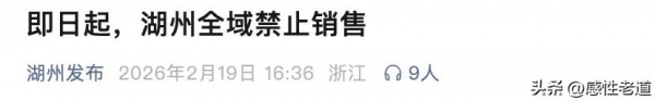 浙江湖州则于2月19日官宣,即日起全域禁止销售烟花爆竹。当地春节临时销售期已结束,全市24家零售点全部完成证件回收与存货清退,进入常态化禁售状态。相关部门开通举报渠道,对违法销售、储存、燃放行为从严查处。