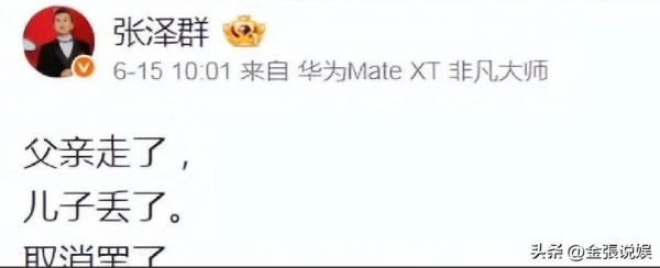 今年父亲节的时候,张泽群写下了一句话:"父亲走了,儿子丢了。"