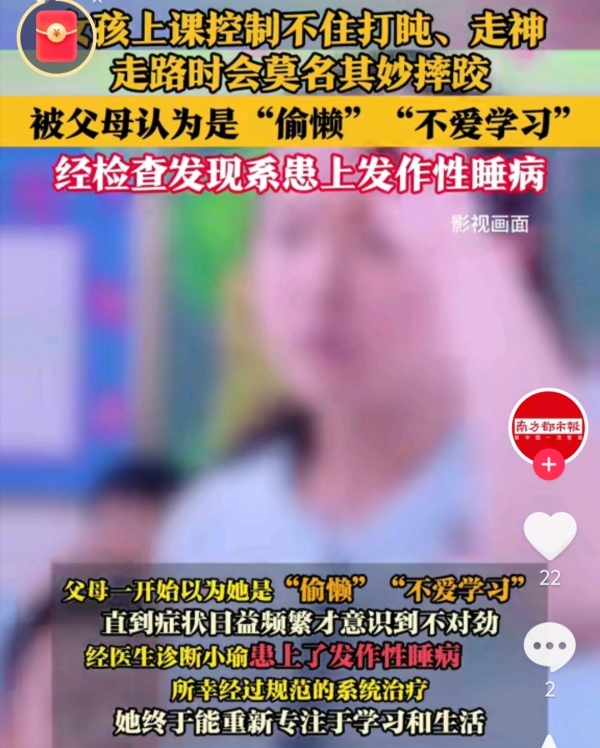 晓萌的故事不是个例。河北沧州这名女生半年前开始频繁"秒睡",上课倒头就睡,看电视也能突然昏迷。她试过早睡,试过喝咖啡,全都没用。老师觉得她偷懒,家长认为她厌学。没人想过,这可能是病。直到医院确诊,所有人才闭嘴。