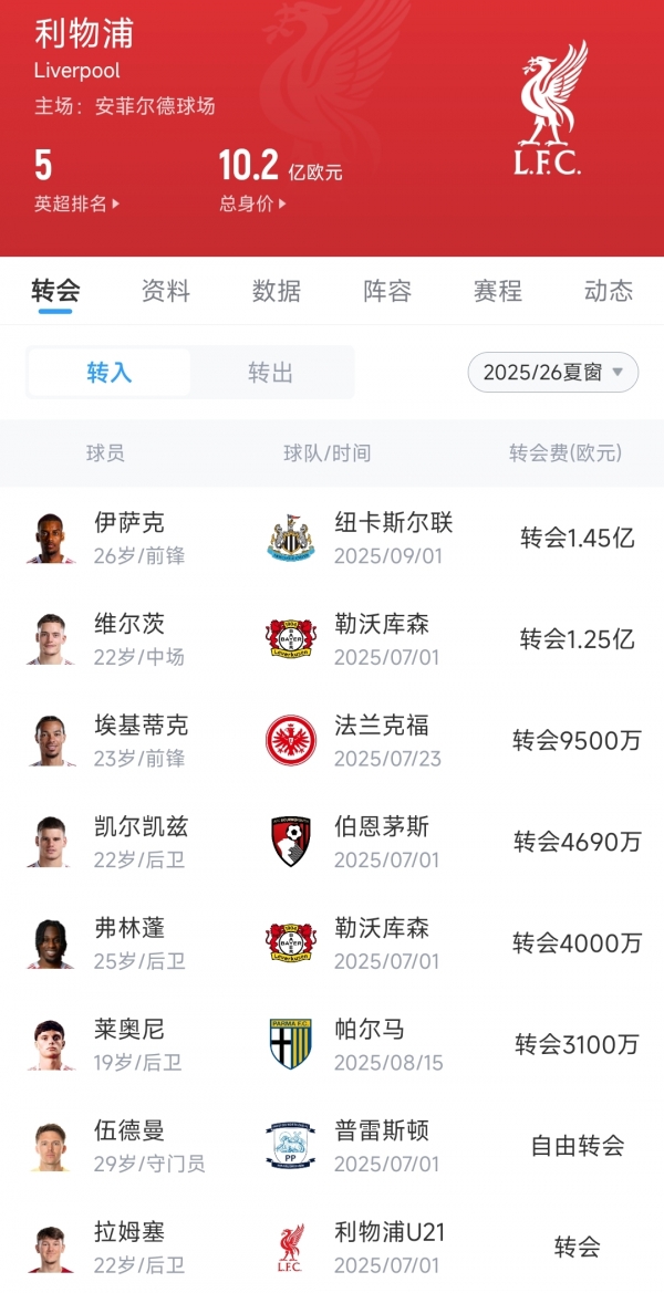 利物浦本赛季四大皆空,英超无望+多线出局 2026-04-15 11:16 直播吧 直播吧04月15日讯 欧冠8强次回合,利物浦不敌巴黎,欧冠无缘晋级。 本赛季各条战线,利物浦联赛杯止步16强,足总杯止步8强,英超争冠无望,如今,欧冠也止步8强。 利物浦夏窗引援: