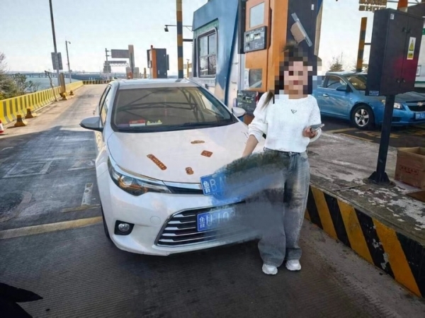随后,山东省公安厅交通管理总队直属高速二支队胶州湾大桥大队民警到场核查,确认该女子存在伪造、变造机动车号牌的违法行为,该违法行为已被依法查处。