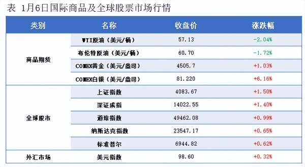 NYMEX原油期货02合约57.13跌1.19美元/桶,环比-2.04%;ICE布油期货03合约60.70跌1.06美元/桶,环比-1.72%。