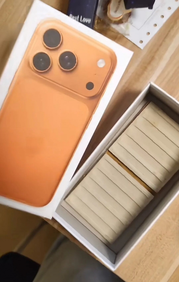 但当他将该盒子打开后,却没有看到预想的最新款手机,而是装了几颗糖和几块砖。