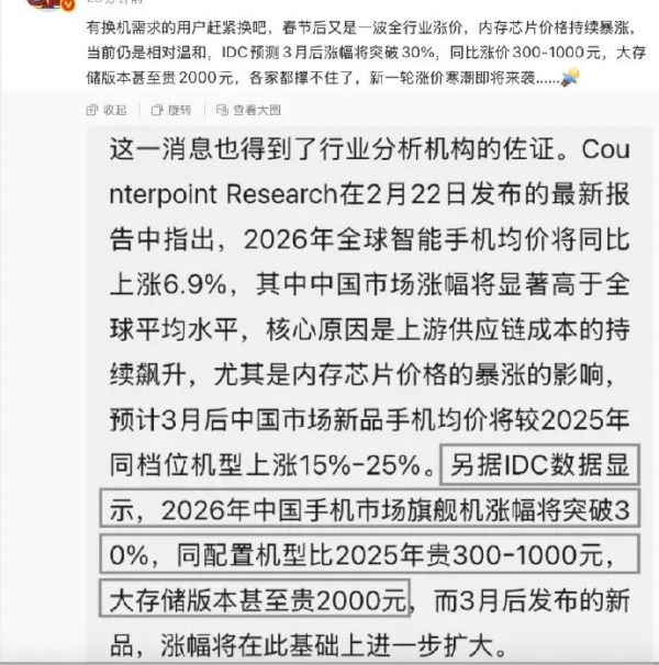 行业机构也明确表示,这波存储紧缺并不是短期现象,产能缺口预计会持续到2026年年底,换句话说,现在的手机价格,很可能是未来很长一段时间里的最低价格,想等到降价再入手,大概率会失望。