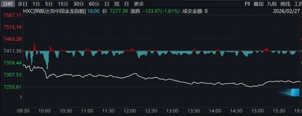美股三大指数2月27日集体收跌,道指跌1.05%,纳指跌0.92%,标普500指数跌0.43%。