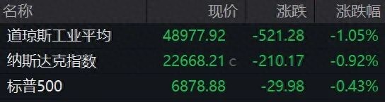 银行股下挫,高盛跌逾7%,摩根士丹利跌超6%,富国银行、花旗集团跌超5%,美国银行跌超4%。