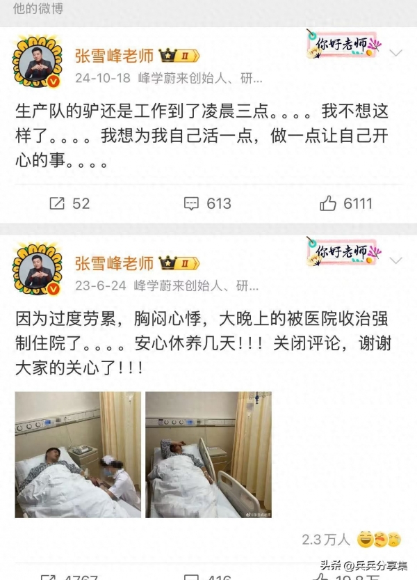 他的助理在知乎匿名贴里写过一句:"雪峰老师不是不想睡,是睡醒后发现又有三条差评要回,三份合同要签,三场直播要备。"