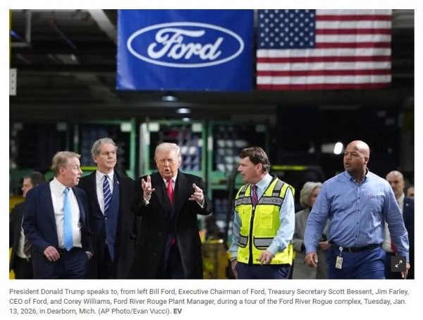 据 The Star 报道,本周二(1 月 13 日),特朗普在密歇根州参观福特工厂时表态,称美国不需要加拿大和墨西哥生产的汽车,制造业应该回流美国本土。