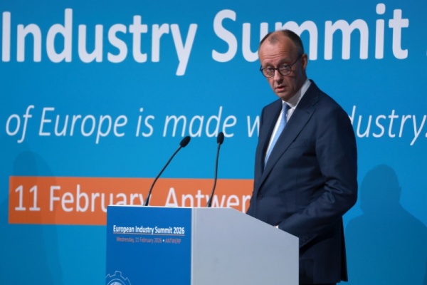 当地时间2026年2月11日,比利时安特卫普,德国总理默茨出席欧洲工业峰会。 IC Photo