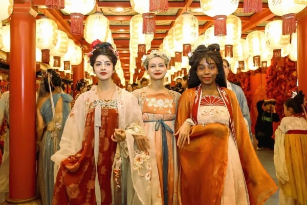 - 西安:金发碧眼"杨贵妃"穿汉服逛街,大唐不夜城秒变"万国来朝";