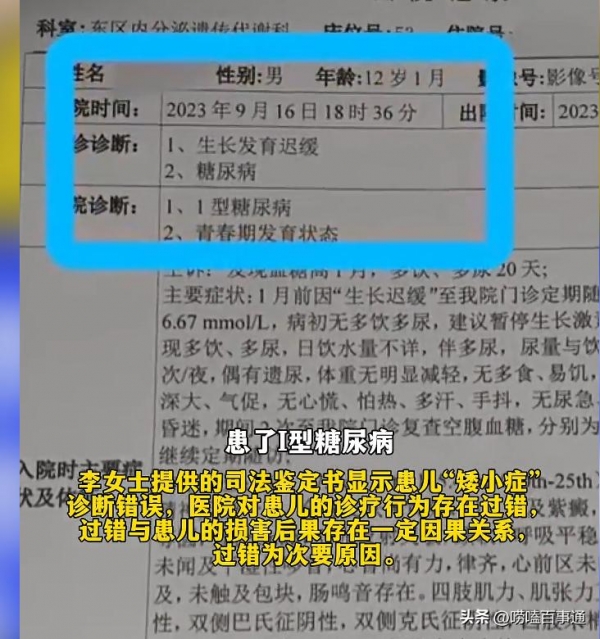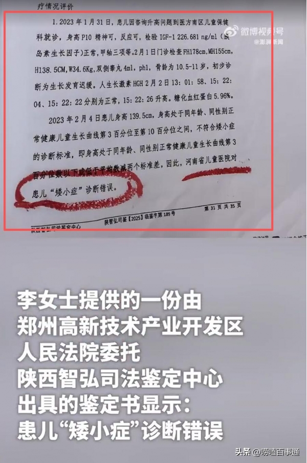 鉴定书写得清清楚楚:医院对"矮小症"的诊断,是错误的。