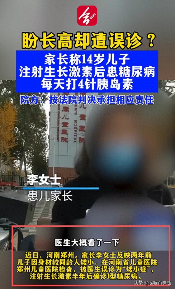 半年后,他没有长高多少,却换来了终身的I型糖尿病。家长李女士崩溃了:这一切的开端,竟是河南省儿童医院的一个"错误诊断"。