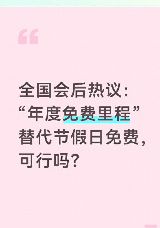 2026年全国两会刚落下帷幕,"高速免费政策改革"就成了百万车主茶余饭后的热门话题。有人说要取消节假日免费,改成每车每年固定免2000或3000公里,消息一出,评论区直接炸开了锅--有人盼着错峰能省钱,有人担心福利缩水白忙活,还有人怕政策改来改去打乱出行计划。